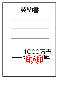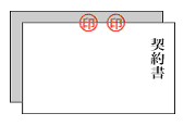 ① 契印・・・書類が2枚以上にわたる場合、その綴じ目に2枚にまたがって押印することをいいます。2枚以上にわたる書類が一体のものであることを明確にするために押します。袋とじされている時は、表側または裏側の綴じ目に当事者双方が1カ所ずつ押します。